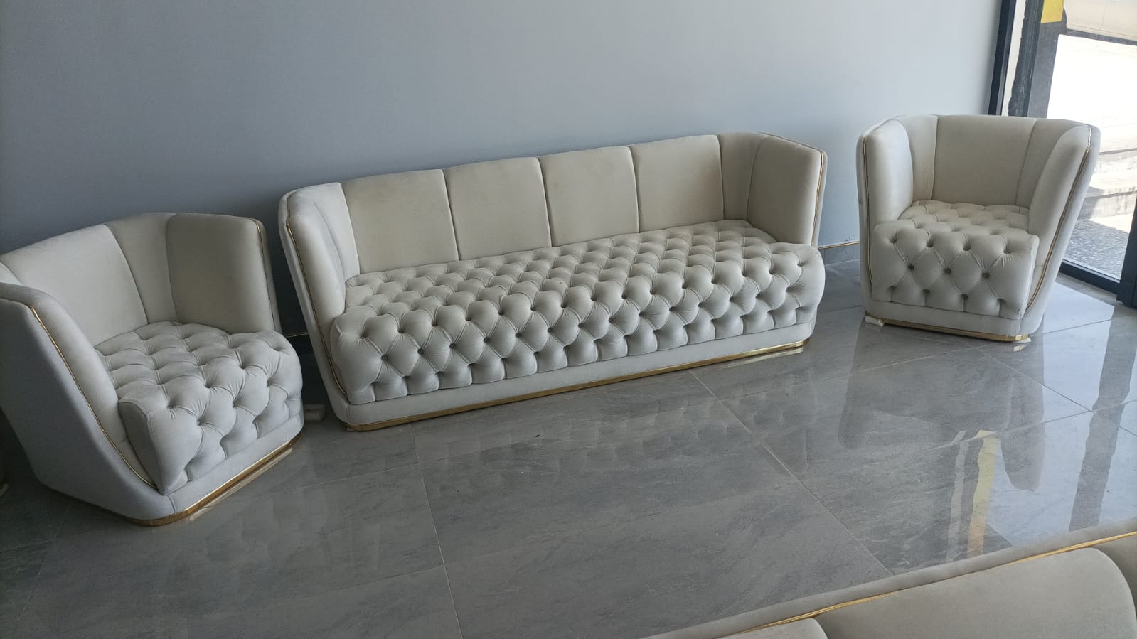 Setul este compus din 1 canapea de 3 persoane si 2 fotolii de 1 persoana ( fara masuta)